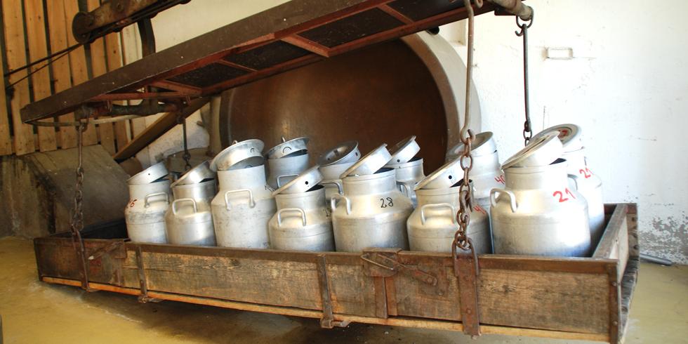 Mit einer Seilbahn schwebt die Milch direkt in die Sennerei